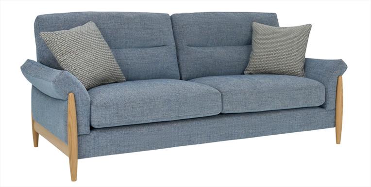 The Clara large sofa features outward turned arms with tapered solid oak legs, this sofa will give you ample space to relax and entertain. The comfortable deep seat and back cushions are attached with Velcro to help keep your cushions in shape.