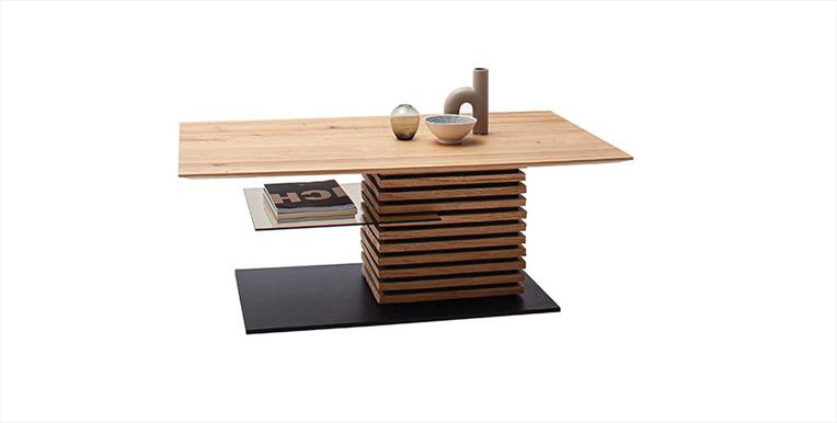 The Yonna Coffee Table includes a pillar with slats for a glass shelf to be inserted. Other combinations are available, please visit us in store for more details.