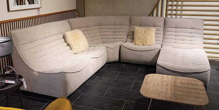 Samba is a modular sofa that envelops you with a sinuous design and geometric workmanship. Its linear and angular elements, chaise-longue and footstool allow you to create the perfect composition for your desires and comfort experience.