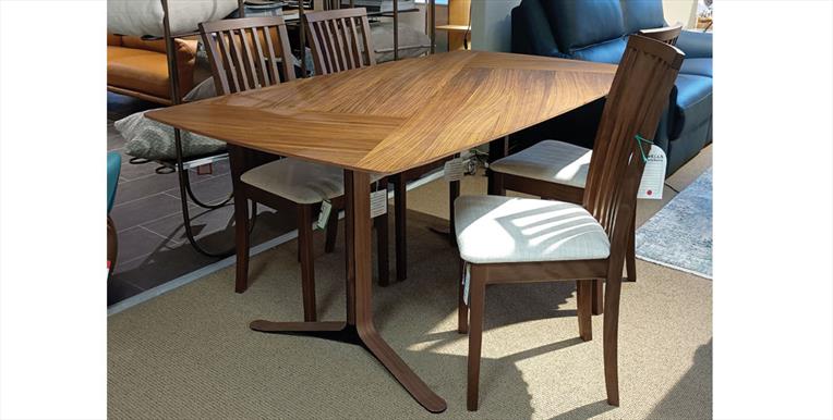 Danish wooden furniture has been recognised for its elegant yet simple lines and tactile use of wood finishes. The Fusion Dining Table typifies the skills of decades of Scandinavian furniture manufacturing. Available to purchase as shown in Walnut with 4 Skovby SM66 Dining Chairs included.