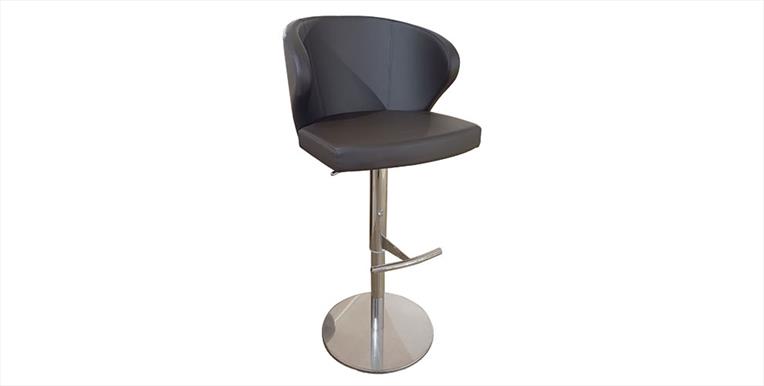 Doris P, catchy name for this adjustable height swivel stool, with a supportive back and wrap around armrests. Cast iron base covered with stainless steel plate.