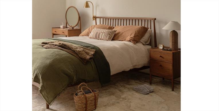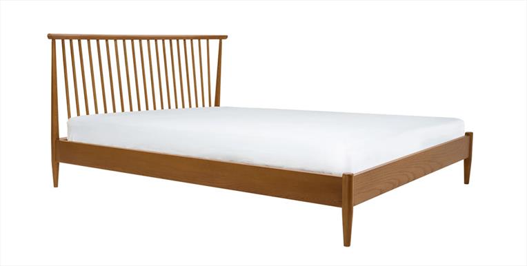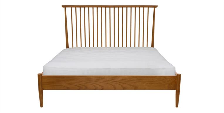 The new Salina spindle headboard bedframe has a smooth and sweeping top curve creating pared down elegant detail along side the gently sloping spindles. Constructed from ash and finished in a white washed stained lacquer that gives a lightness and calm to a room.