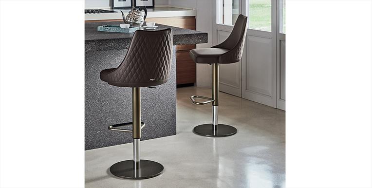 The stunning Clara Barstool with lacquered metal frame seat and back upholstered and covered. Piping can be matching or contrast colour. Quilted backrest version available (only for Nordic fabric, Eco leather and Premium nappa leather).
