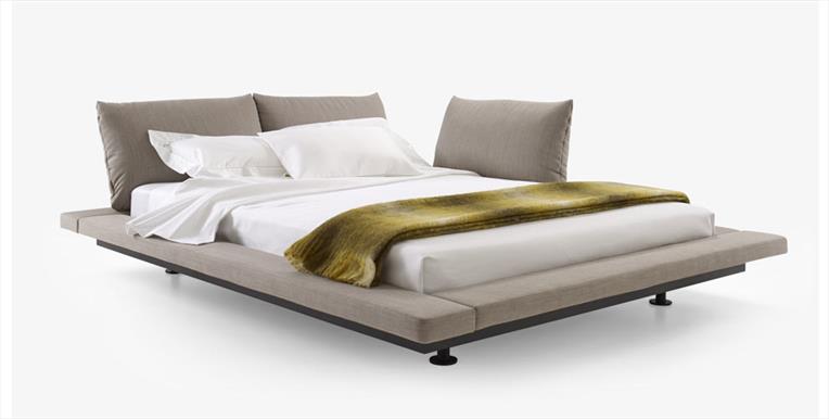 The Maly bed is constructed around the idea of a vast central platform which is both soft and supple (slatted base, mattress and bedding), surrounded by horizontal planes for a more tautly rigorous geometric effect. The pillow / headboard cushions slide freely around the bed frame, allowing for a multitude of positions since there is no fixed way for the bed to be used.